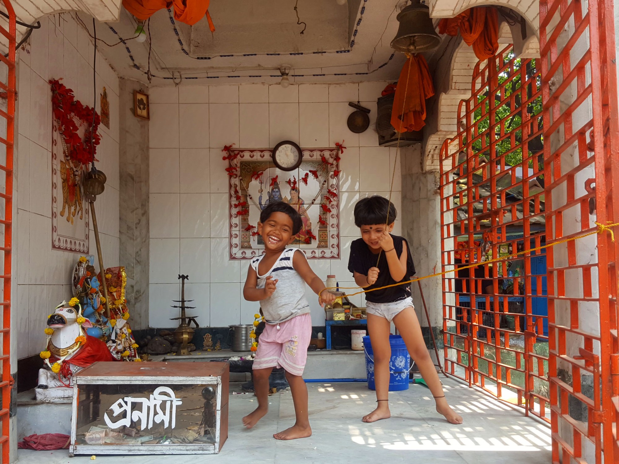 Ho imparato poi la parola magica: “dara”, che in bengalese significa “aspetta”, “aspettare”, e così mentre fanno la coda cantiamo la parola magica e loro si divertono senza farsi troppo male. Integriamo le regole tramite il gioco.