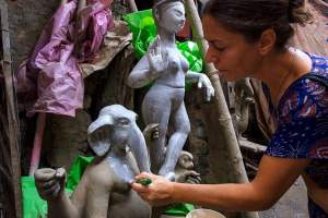 Durgapuja. Prepararsi alla festa di Durga. Le sculture. Il fiume.
