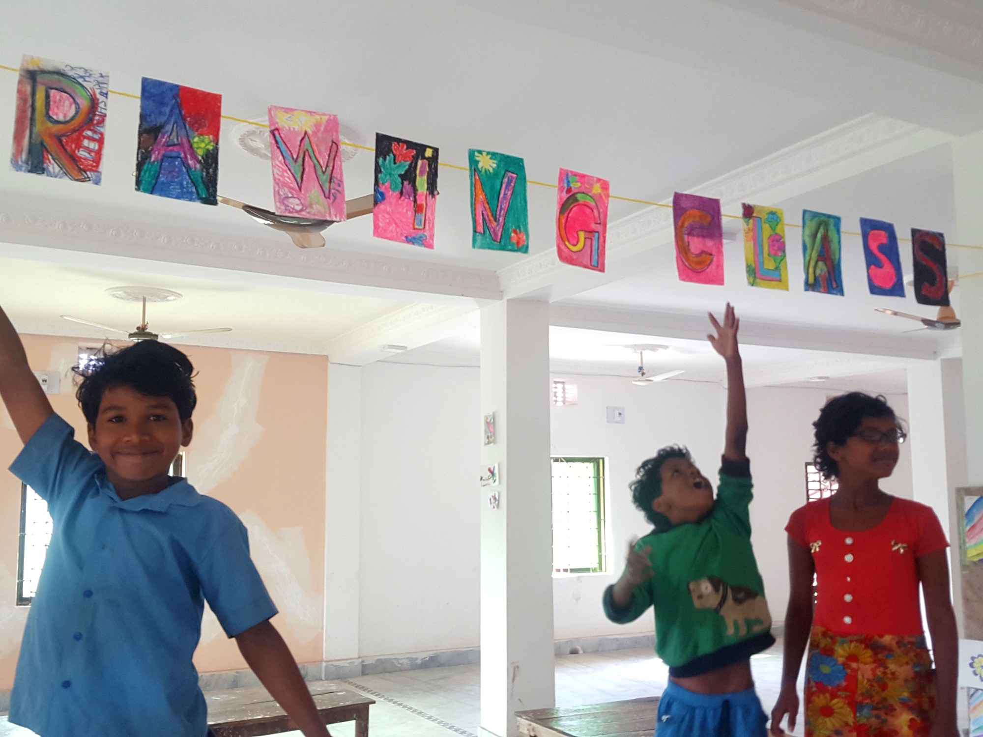 Ma il taxista, per errore di google maps, mi lascia di fronte ad un negozio di cancelleria per la scuola. Certamente un segno. Il paradiso per me. Ed anche per il proprietario del negozio perché, dopo aver passato un tempo infinito a cercare e scegliere articoli estrapolandoli dal caos e dalla polvere indiana, sono uscita dal negozio con due borse belle cariche di materiale da disegno e colori.